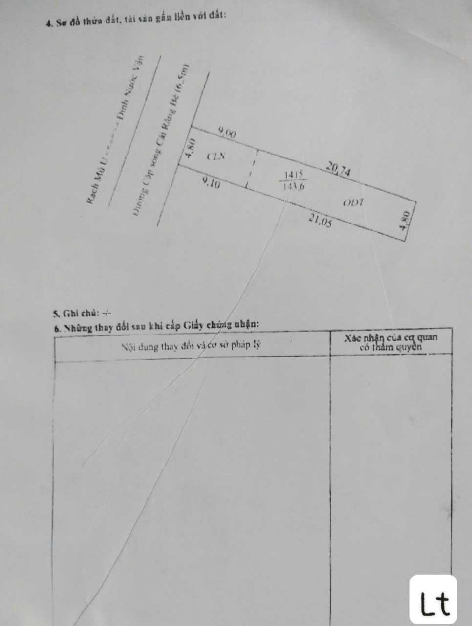 Nền mặt lộ 6m, dt 4,8m x 30m = 144 m2; PL: OK