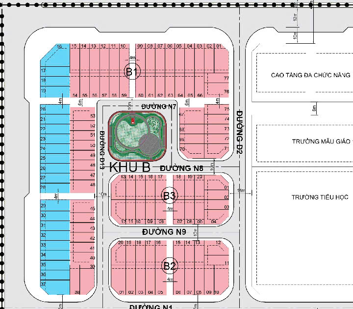 Nền B1-60; DT: 90m2, giá T11/2025: 4.817.947.000 đ nền nhà phố. QH 1/500.